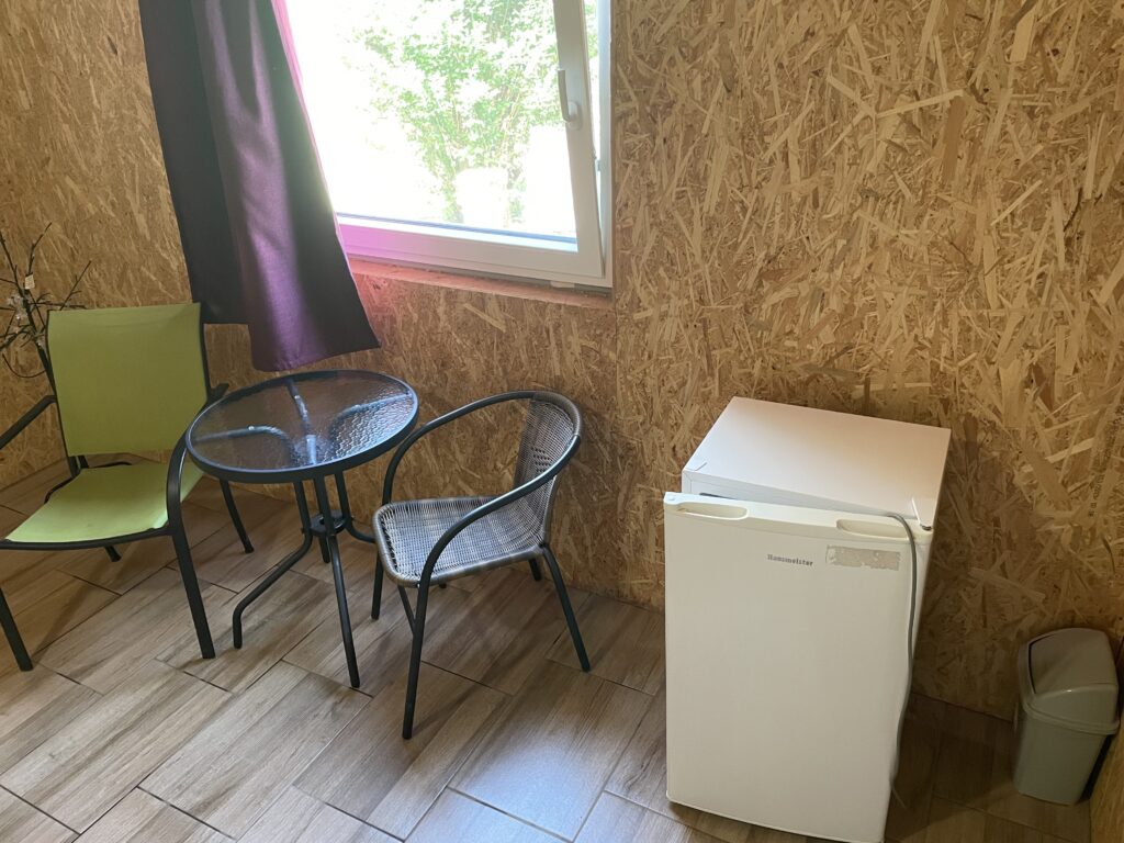 A vendégek rendelkezésére áll egy hűtőszekrény, valamint egy szekrény a személyes holmik kényelmes tárolására.